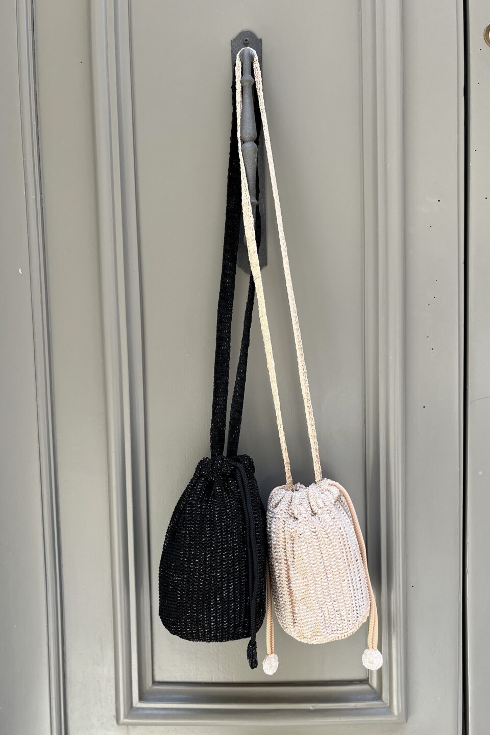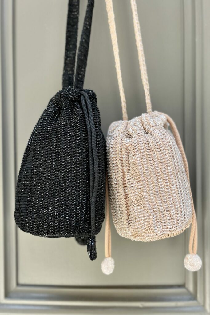 Mini Secchiello perline chiusura con elastico menù a tendina per colori (black, nude ) Made in Italy