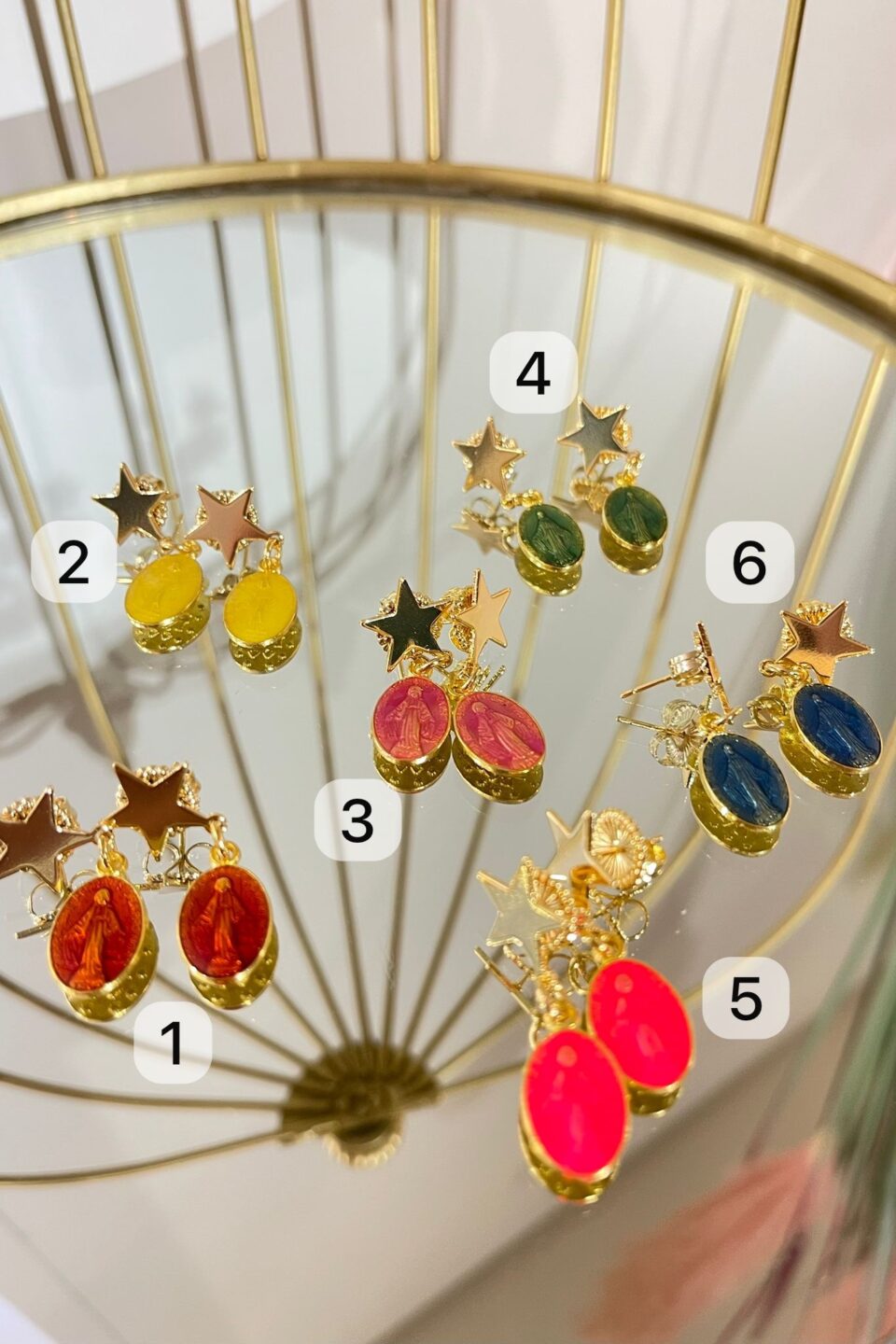 Orecchini Holy Mary Star prodotto artigianale made in ITALY ottone galvanizzato oro 24k steel free e nichel free