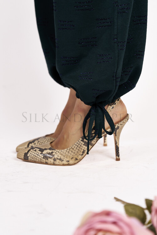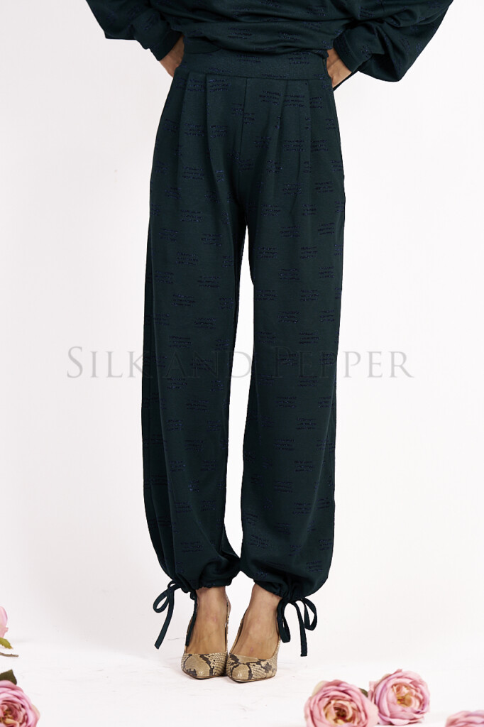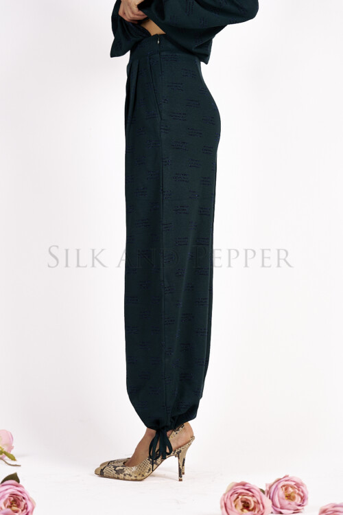 Il tessuto jacquard fantasia su base viscosa dona una texture sofisticata, mentre l’elastico in vita garantisce comfort e praticità. La vestibilità over crea un look contemporaneo, perfetto da indossare con sneakers, mocassini o ankle boots.