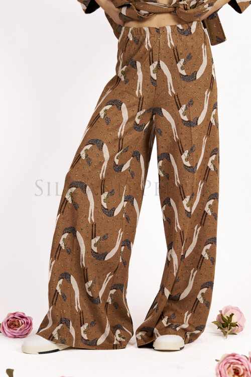 Pantalone Palazzo Ampio in Jacquard Fantasia – Vita Elasticizzata – Made in Italy