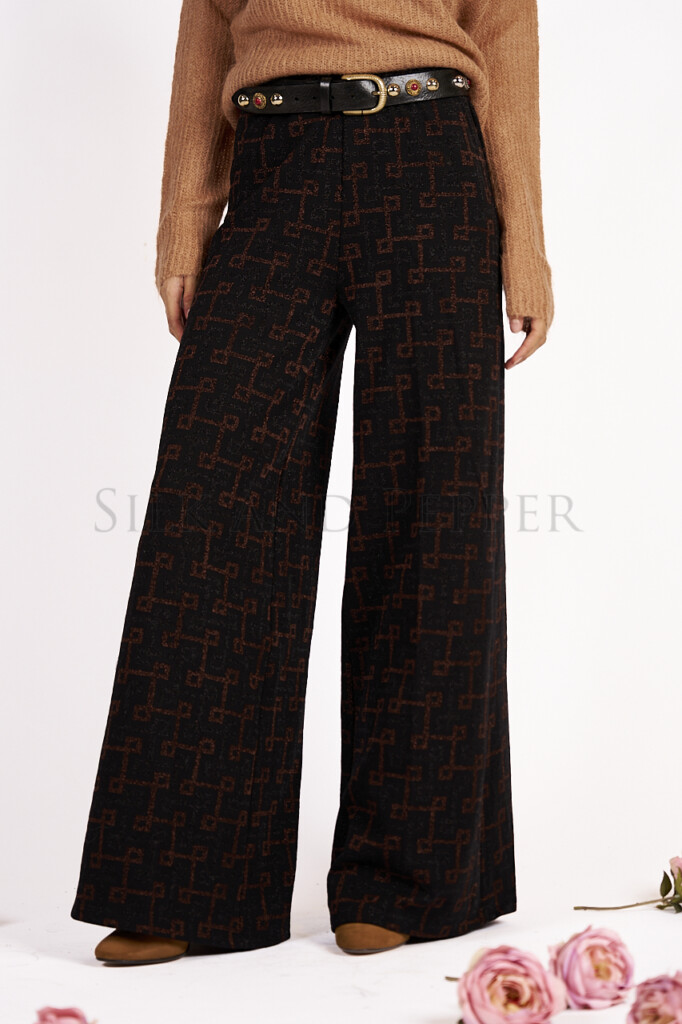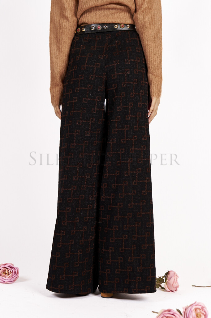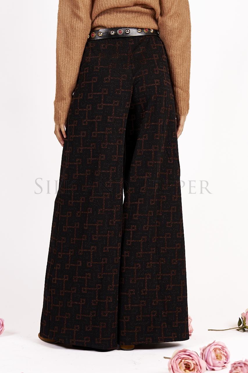 Pantalone Palazzo Ampio in Jacquard Fantasia – Vita Elasticizzata – Made in Italy