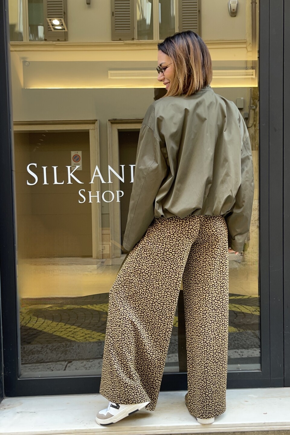 La linea ampia e morbida del taglio palazzo slancia la figura e accompagna ogni movimento con naturale eleganza, creando un effetto dinamico e femminile. L’elastico in vita garantisce una vestibilità confortevole e versatile, adattandosi al corpo senza costrizioni: ideale da indossare tutto il giorno, dall’ufficio all’aperitivo serale.