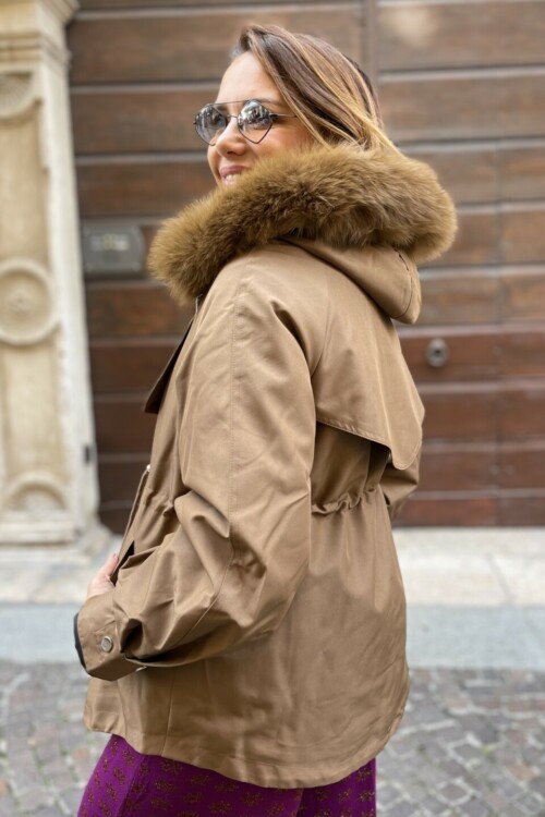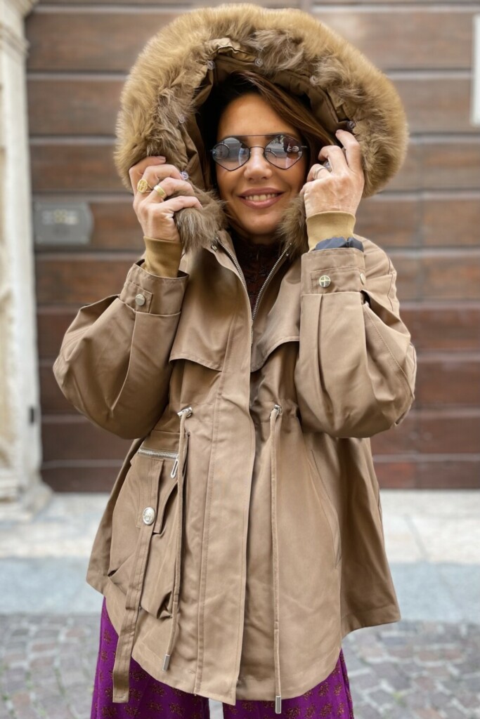 Parka marrone con finta pelliccia rimovibile su cappuccio full zip – Stile e comfort per l’inverno