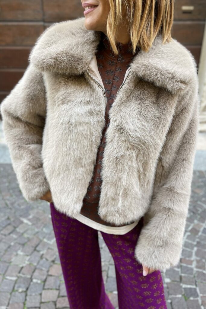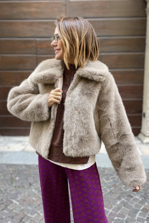 Cappotto corto in pelliccia sintetica
