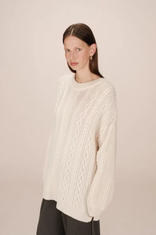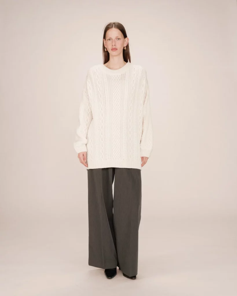 Un must-have del guardaroba femminile, questo maglione donna oversize écru unisce praticità e stile, rendendolo perfetto sia per look casual da giorno che per abbinamenti più ricercati.