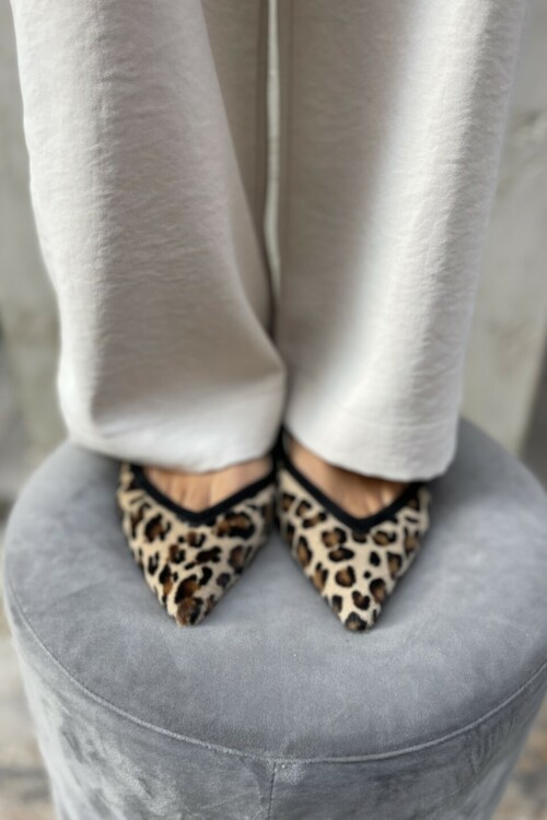 La scarpa flat animalier è la scelta ideale per chi desidera unire comodità, eleganza e carattere. Realizzata in pregiato cavallino, si distingue per la raffinata stampa animalier che dona un tocco grintoso e contemporaneo a ogni look.