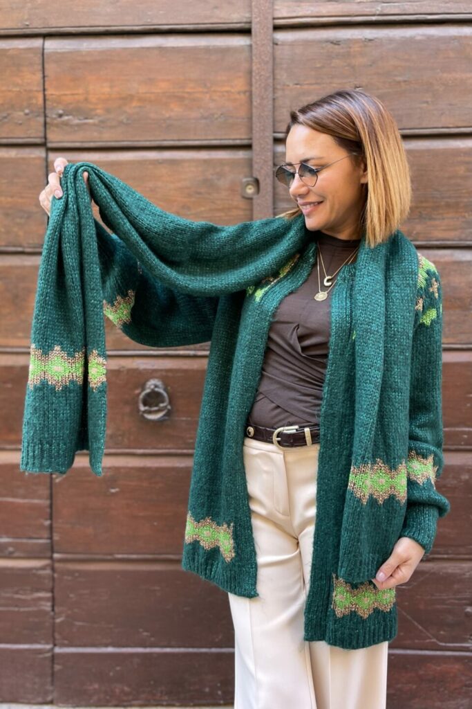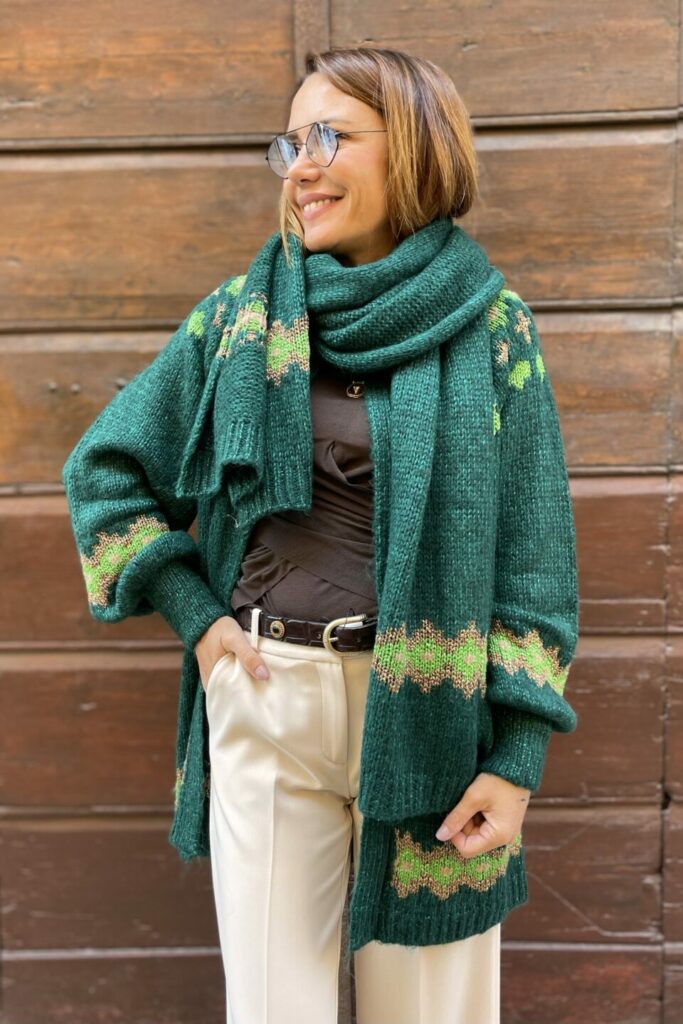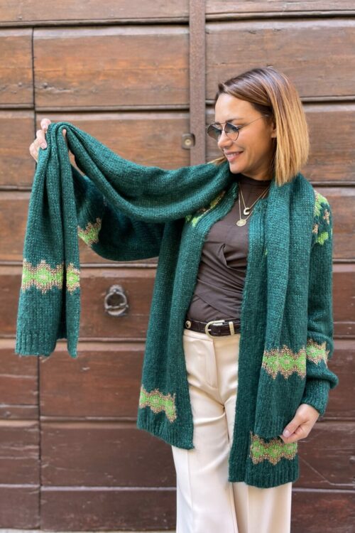 Avvolgiti nel comfort e nello stile unico della sciarpa Nordico verde, un accessorio indispensabile per affrontare la stagione fredda con eleganza.