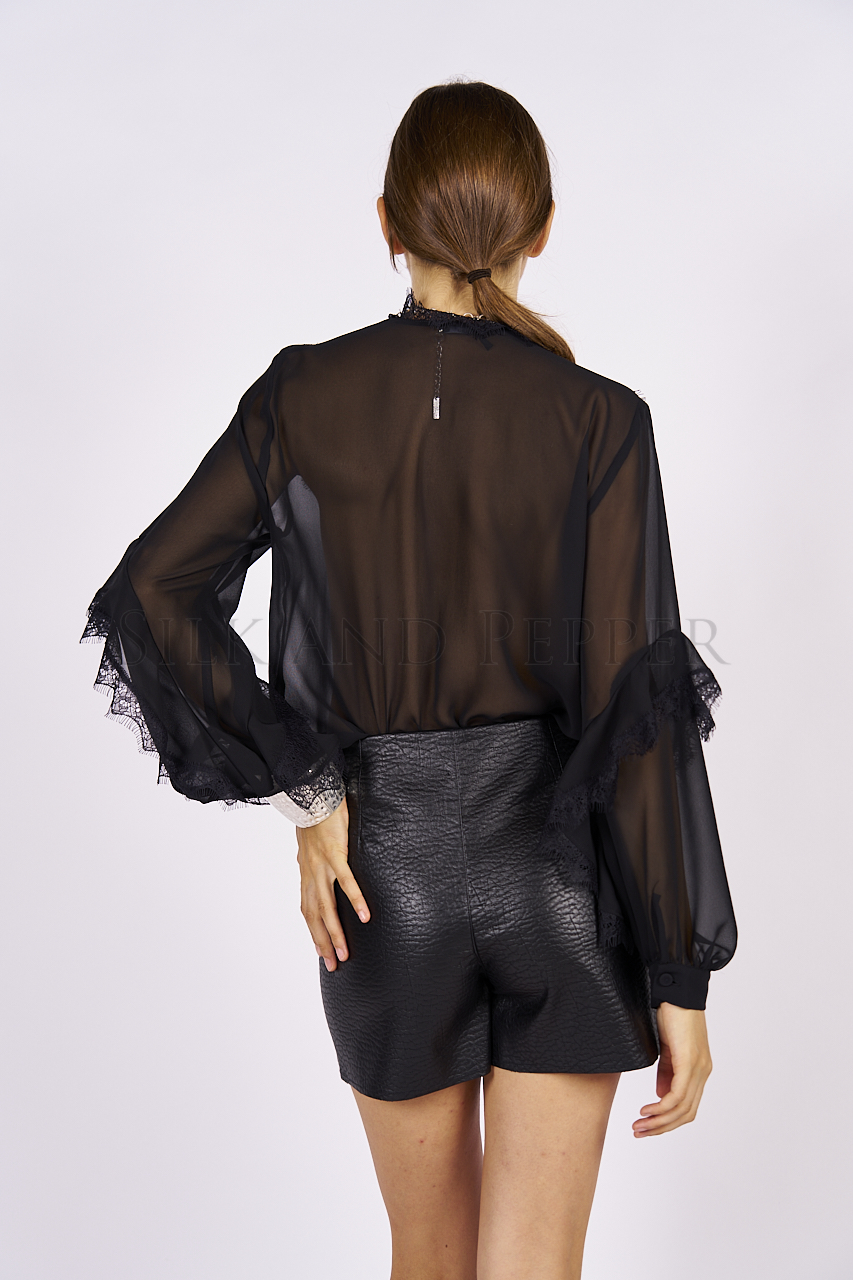 Un mix perfetto tra grinta e femminilità. Questo short effetto gonna-pantalone è realizzato in un materiale effetto pelle martellata, che dona al capo una texture decisa e contemporanea. Il design è impreziosito da un piccolo spacchetto frontale, che aggiunge movimento e un tocco seducente, pur mantenendo la praticità dello shorts.