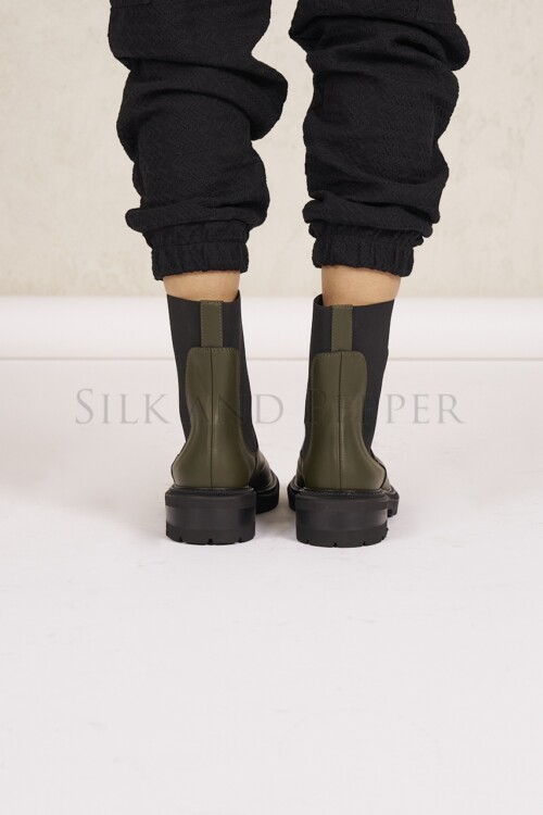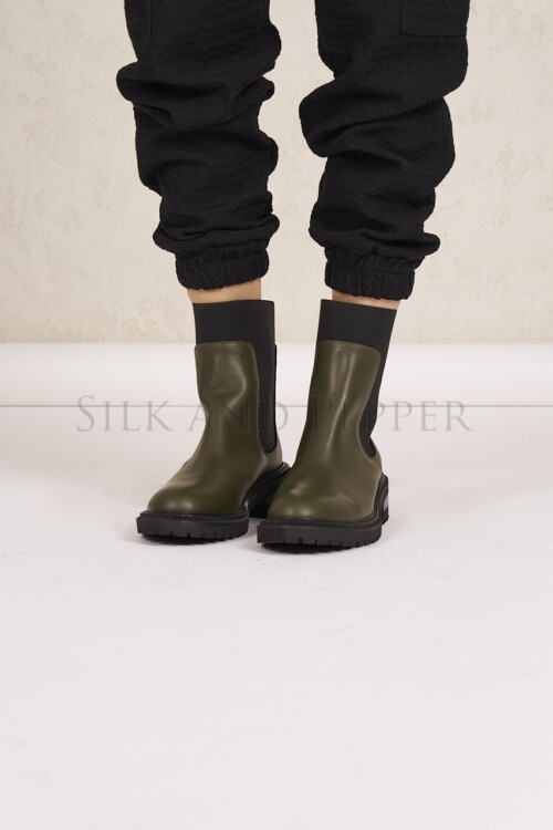 Stivaletto pelle militare con elastico tono su tono tutto realizzato in italia