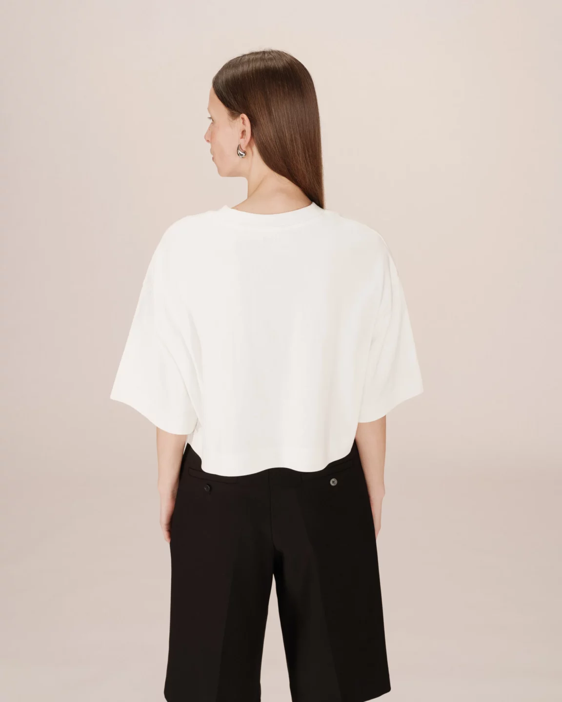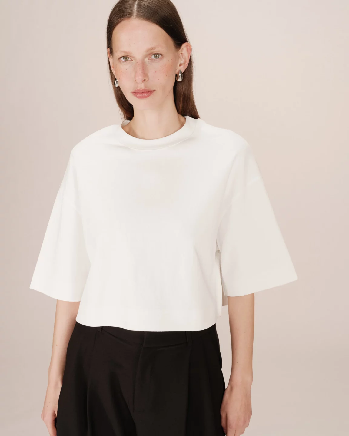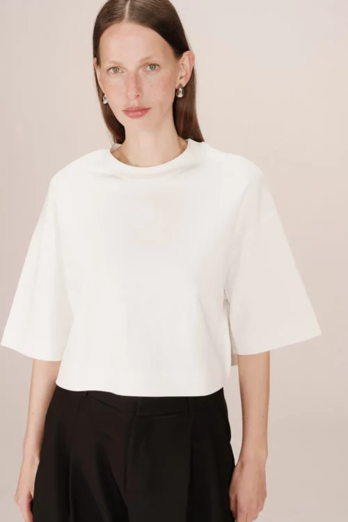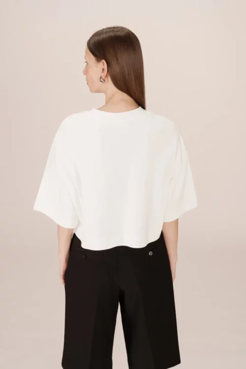 Un must-have nel guardaroba femminile, ideale per chi cerca una t-shirt donna bianca crop comoda, essenziale e sempre alla moda.
