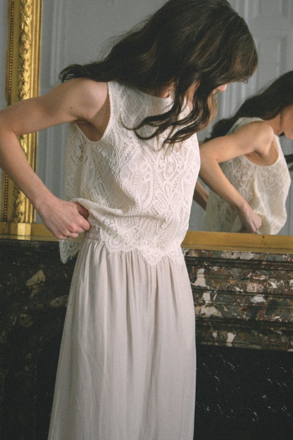 Top ecrù pizzo 65% cotone 35% nylon